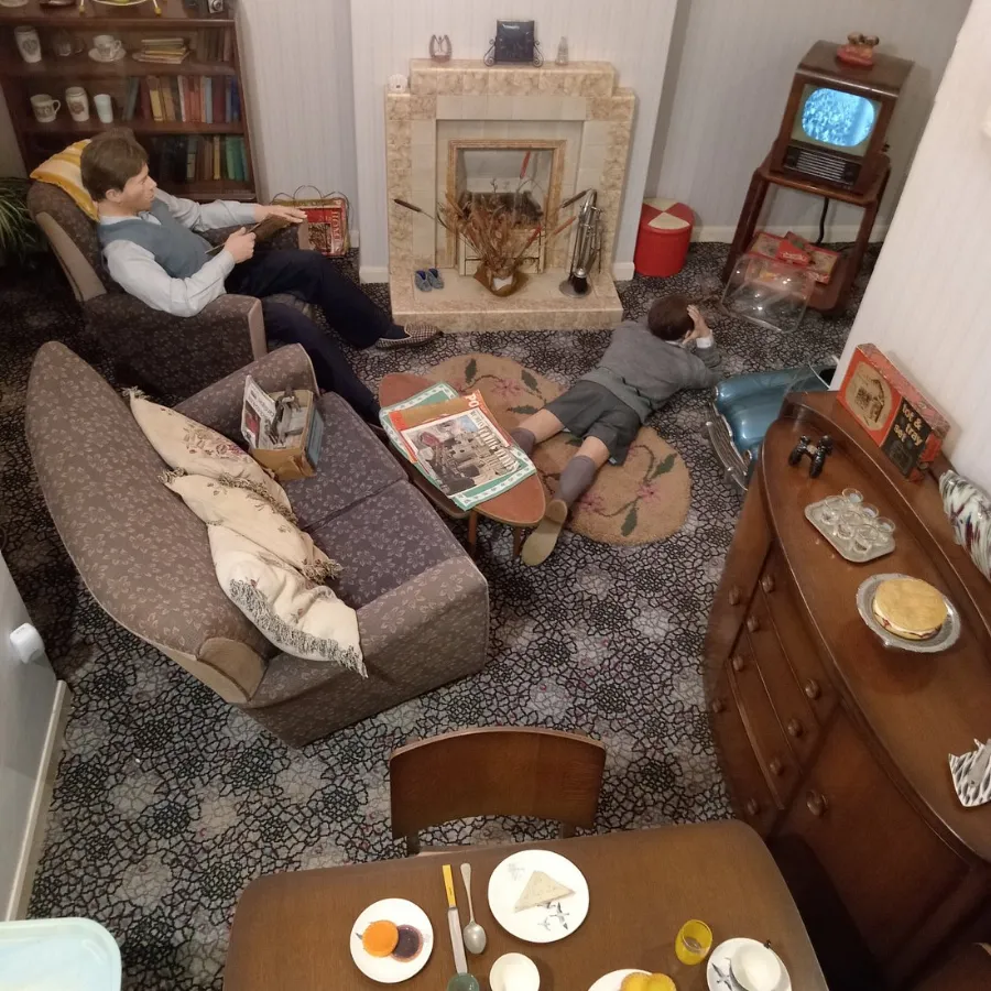 Kolejne sale to już wiek XX. Zobaczysz fascynującą jadalnię z lat 30. w stylu wczesnego glamour, inspirowaną kulturą Hollywood, by ostatecznie wylądować w krzykliwym, kolorowym salonie z lat 50., gdzie centralne miejsce zajmuje już telewizor. To prawdziwa gratka dla miłośników antropologii i designu wnętrz.